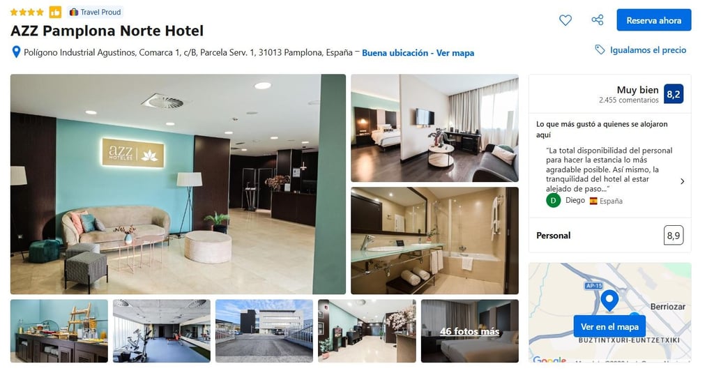 El AZZ Pamplona Norte Hotel se ubica en el polígono industrial de Agustinos, a unos 7 minutos en coche del centro de Pamplona y con conexión directa a la autovía A-15, lo que facilita el acceso a otras ciudades del norte de España y Francia . Esta localización, orientada principalmente a clientes de negocios y tránsito, explica que su puntuación en ubicación en plataformas como Booking se sitúe en torno al 7,0–7,1, siendo uno de los aspectos más débiles según los usuarios . Desde el punto de vista inversor, esto implica un posicionamiento menos atractivo para turismo urbano tradicional, pero a la vez puede favorecer una demanda más estable vinculada a actividad empresarial, logística y estancias de paso, lo que aporta cierta recurrencia en ingresos aunque limita el potencial de revalorización ligado a ubicaciones prime.