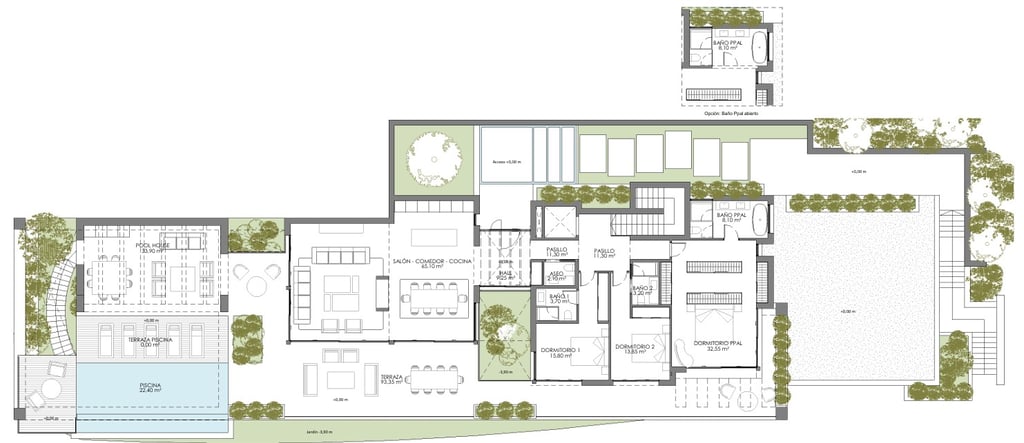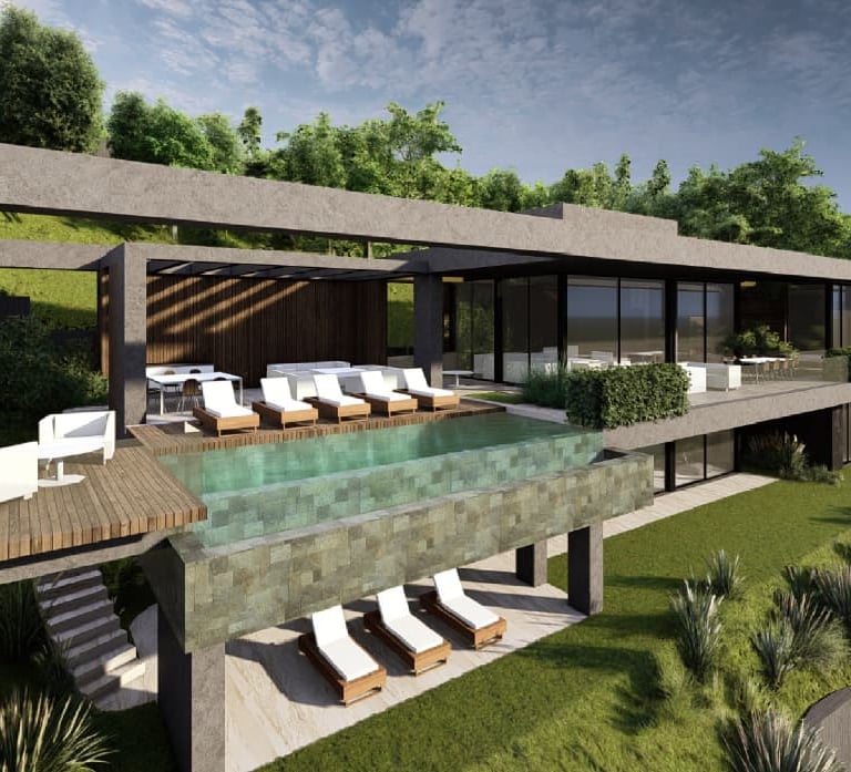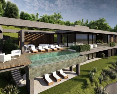 El activo a financiar es la construcción de una vivienda unifamiliar de lujo de 650 m² sobre una parcela de aproximadamente 1.500 m², situada en la Urbanización Real de la Quinta. El diseño incluye espacios y servicios asociados al segmento prime: cinco dormitorios, siete baños, gimnasio, sala de cine, piscina, grandes superficies de terrazas y áreas exteriores.