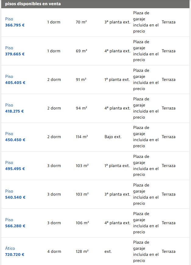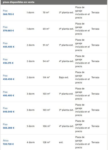Viviendas del proyecto ofertadas en portal inmobiliario