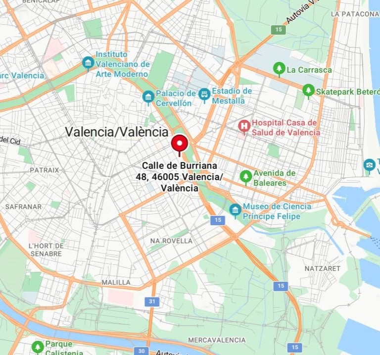 El inmueble se localiza en la Calle Burriana, 48, dentro del barrio de Gran Vía – Cánovas, en Valencia. Se trata de una zona consolidada, céntrica y con elevada demanda residencial, caracterizada por: