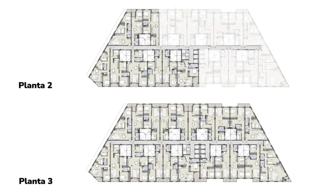 El proyecto contempla el desarrollo de 30 viviendas con plaza de garaje y zonas comunes distribuidas entre la segunda y tercera planta del edificio. La inversión se articula mediante préstamo participativo con un plazo estimado de 18 meses y una rentabilidad máxima objetivo del 18% total, equivalente a un 12% anualizado.
