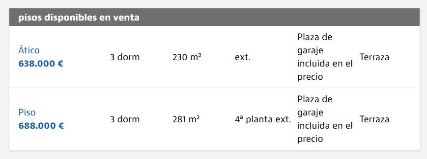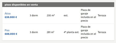 Viviendas del proyecto ofertadas en portal inmobiliario