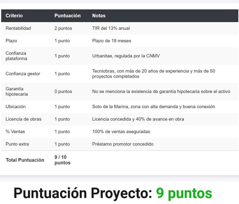 Informe del Proyecto de Crowdfunding Inmobiliario en Urbanitae que consiste en un préstamo para la construcción de 173 viviendas del proyecto Residencial Coppelia en Soto de la Marina, Santander
